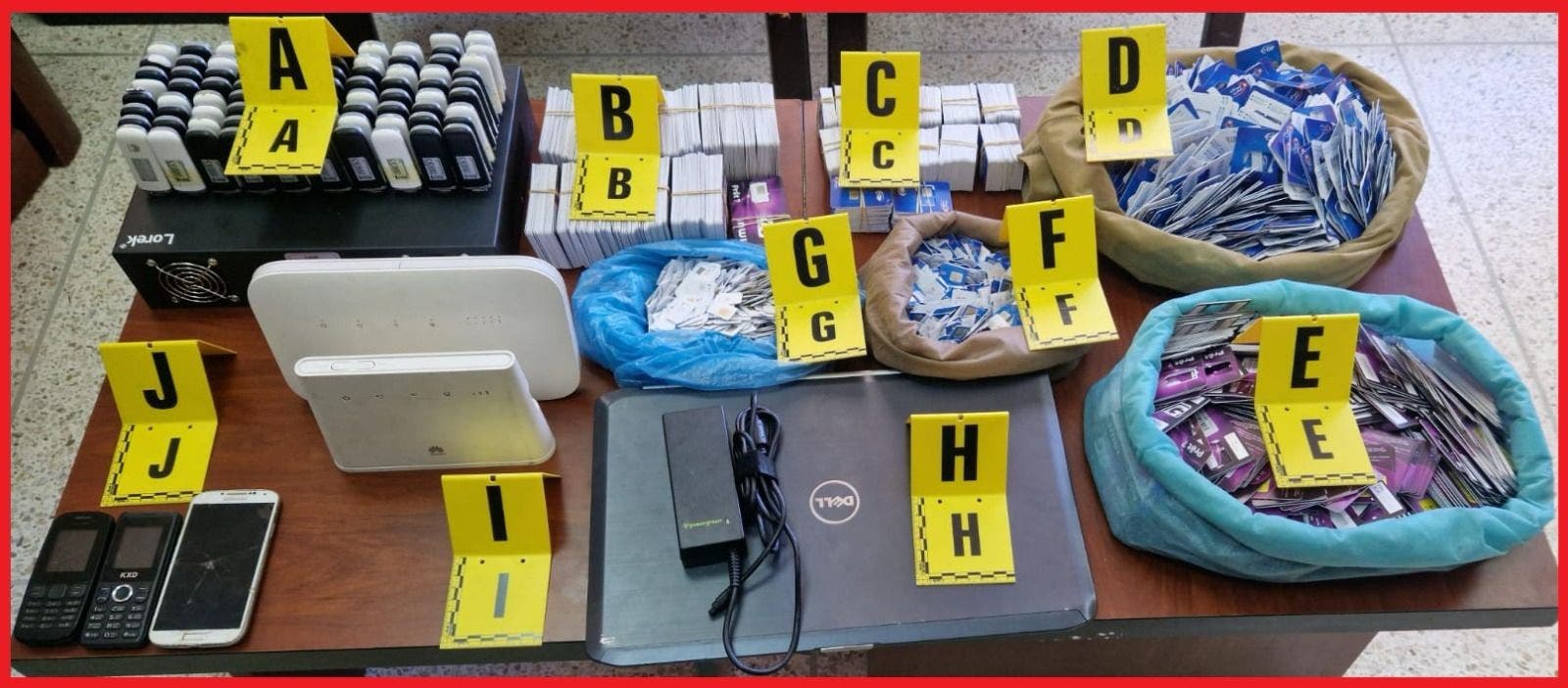 وأضاف المصدر ذاته أن عملية الضبط والتفتيش المنجزة بداخل منزل يستغله المشتبه به مكنت من حجز حاسوب محمول و82 جهازا لاسلكيا للربط بالأنترنت، فضلا عن 2077 شريحة هاتفية و1758 دعامة خاصة بالشرائح الهاتفية، وكذا مجموعة من المعدات الإلكترونية والمعلوماتية المستعملة في ارتكاب هذه الأفعال الإجرامية.