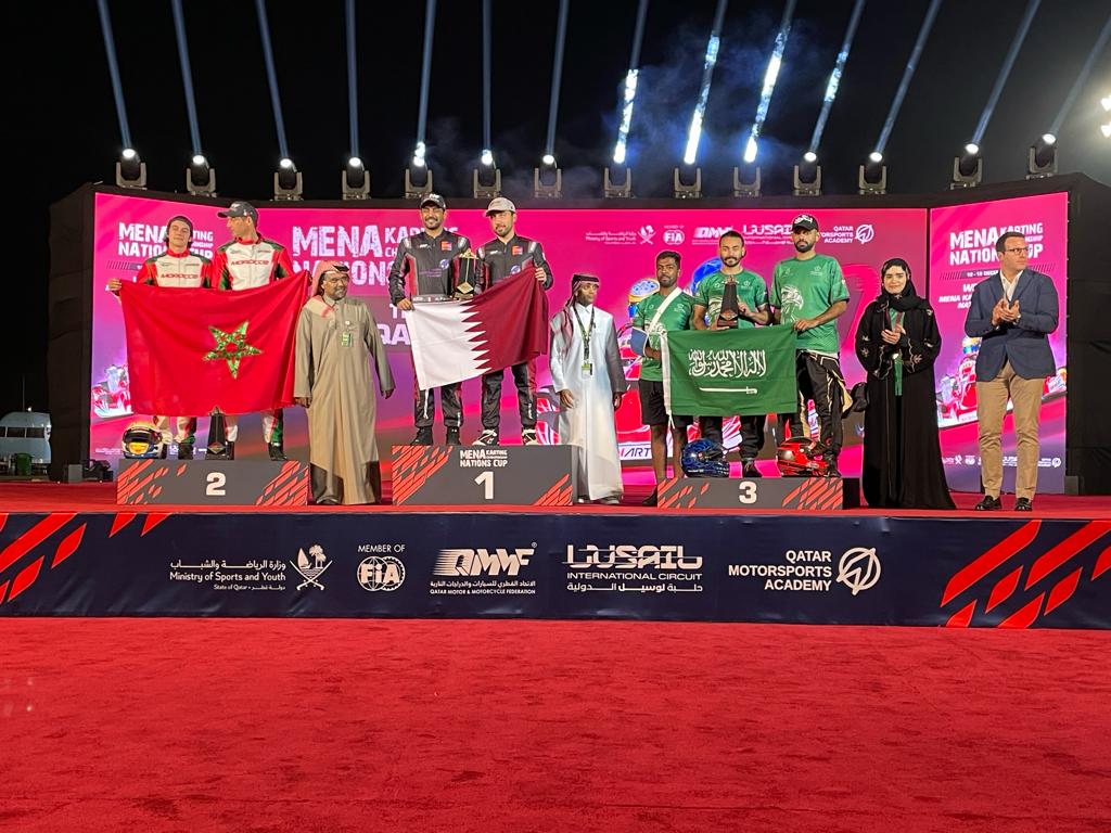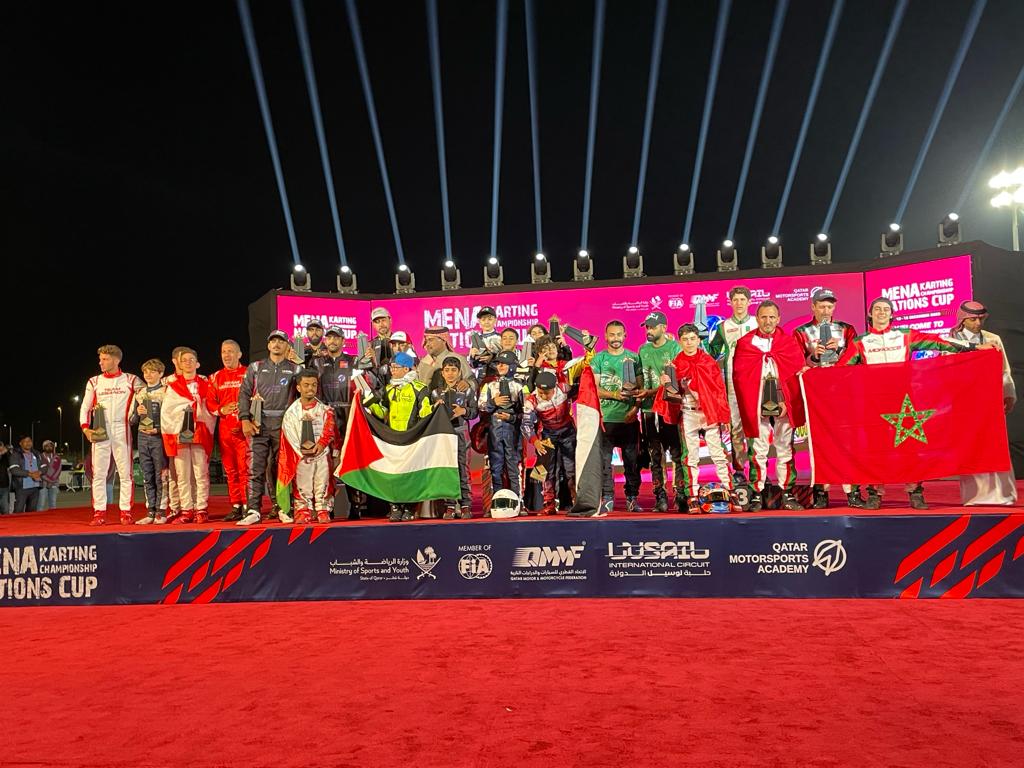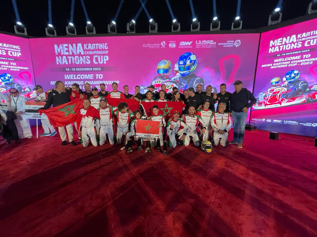 في أجواء تنافسية عرفت عنصر التشويق والإثارة، أسدل الستار مساء السبت 16 دجنبر 2023 فعاليات بطولة كأس الأمم للكارتينج لمنطقة الشرق الأوسط وشمال إفريقيا 2023، التي نظمها اتحاد السيارات والدراجات النارية على مضمار الكارتينج في حلبة لوسيل الدولية، على مدار 3 أيام وسط مشاركة 165 متسابقا ومتسابقة يمثلون 15 دولة، جاء المنتخب المغربي في المركز الأول بـ 718 نقطة، والفريق الإماراتي ثانيا بـ 632 نقطة، بينما حل الفريق القطري بالمركز الثالث برصيد 595 نقطة بينما حل الفريقان اللبناني والعماني في المركزين الرابع (575 نقطة) والخامس (537 نقطة) على التوالي.