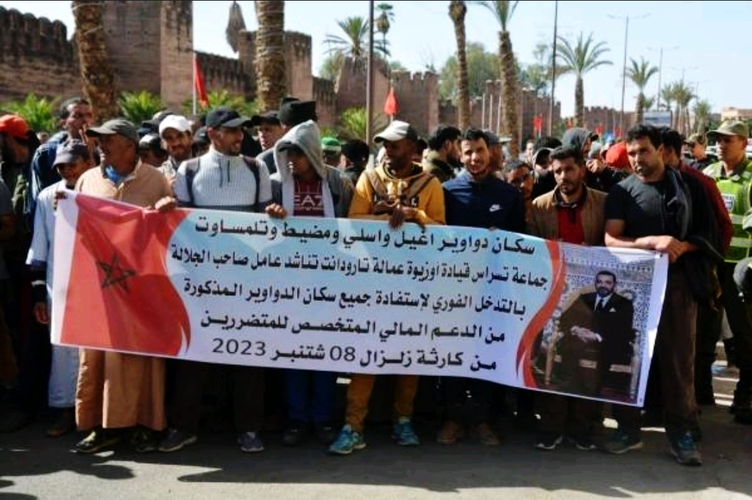 واستنكر المحتجون على استمرار معاناتهم بعد نصف سنة من الزلزال، حيث لا تزال الأسر تعيش في الخيام وفي ظروف جد صعبة، وعلى مساعدات المحسنين، واحتجوا على وجود تلاعبات في الدعم المخصص للمتضررين، حيث استفاد بعض غير المستحقين بينما حرمت العائلات والأسر التي تعيش في ظروف مزرية.